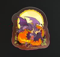 It's the Pumpkin King! This sticker was designed in October 2023 as a part of my monthly sticker club - and as a bonus, it glows in the dark! This sticker measures about 5" at the widest and is printed on sturdy vinyl in brilliant colors. It'll hold up just fine in sunlight and to weather wear and tear.